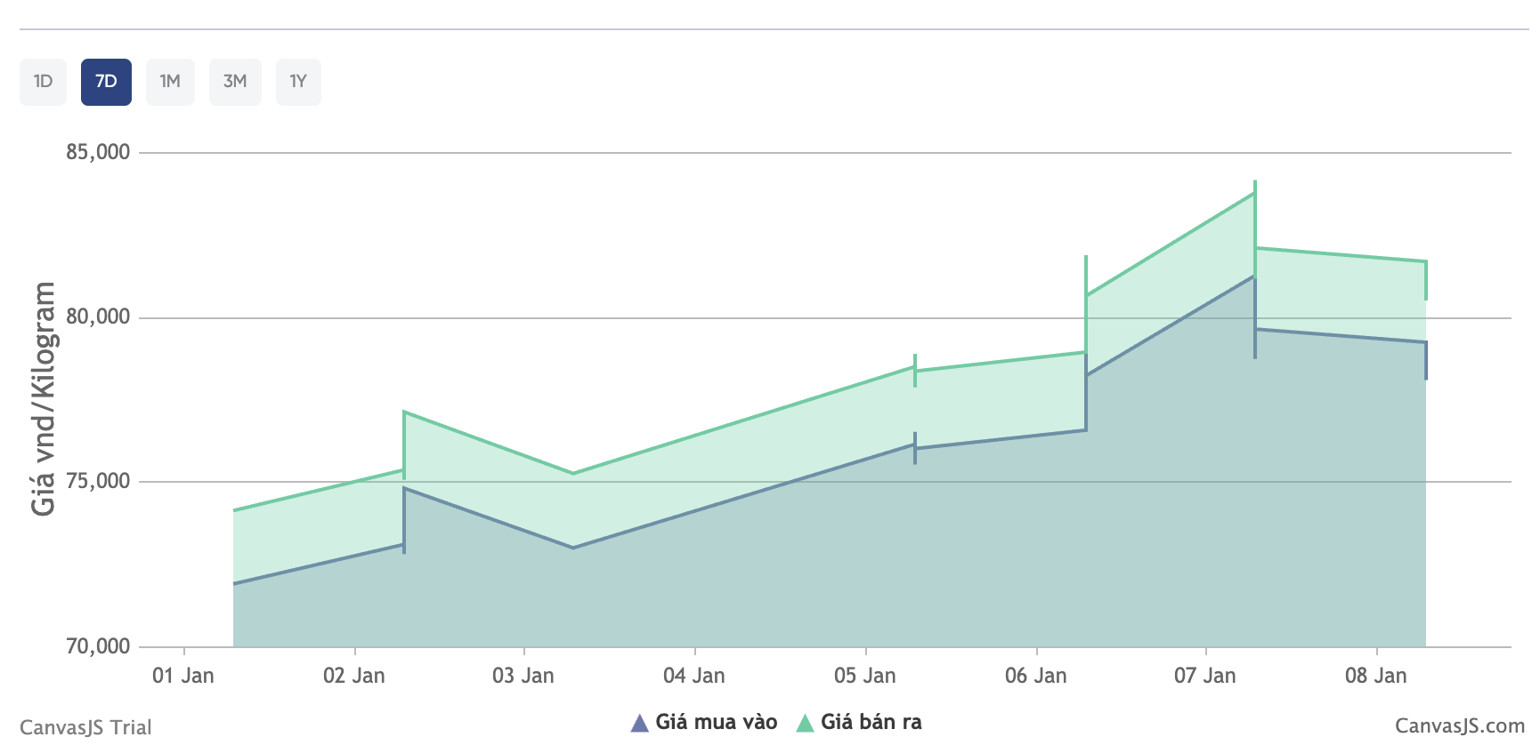 Biểu đồ giá bạc của Phú Quý trong 7 ngày qua.