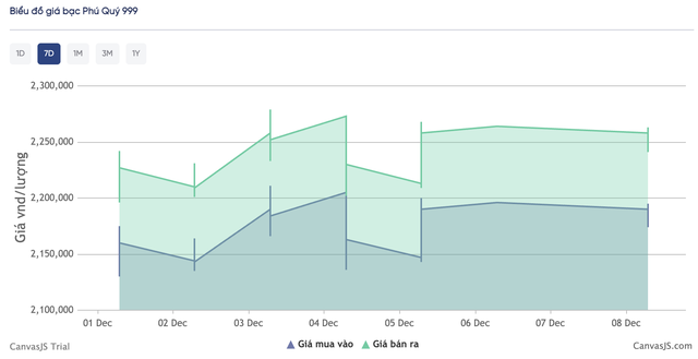 Biểu đồ giá bạc Phú Quý trong 7 ngày qua.