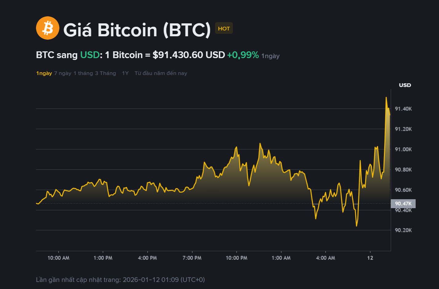 Giá Bitcoin hiện đang giao dịch quanh mức 91.430 USD, với vốn hóa thị trường vào khoảng 1.826 tỉ USD và khối lượng giao dịch trong 24 giờ đạt gần 20 tỉ USD.