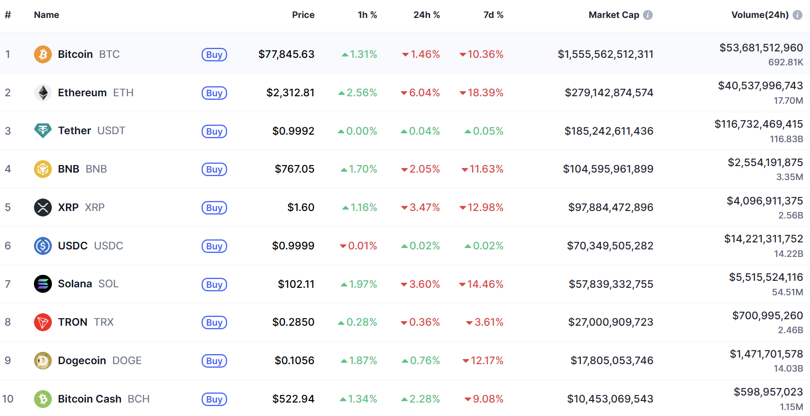 Giá Bitcoin hiện đang giao dịch quanh mức 77.684 USD, với vốn hóa thị trường vào khoảng 1.548 tỉ USD và khối lượng giao dịch trong 24 giờ đạt hơn 50 tỉ USD.