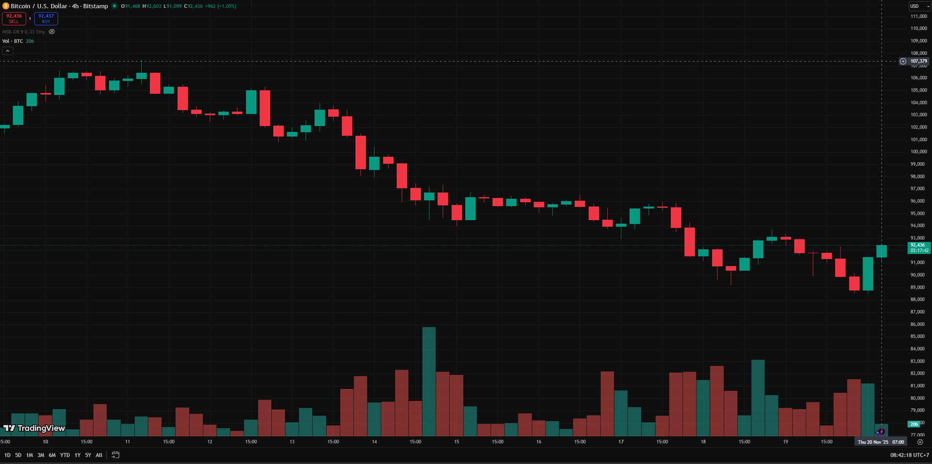 Biểu đồ BTC/USD theo khung 4 giờ tính đến 20.11- Ảnh: TradingView/Bitstamp