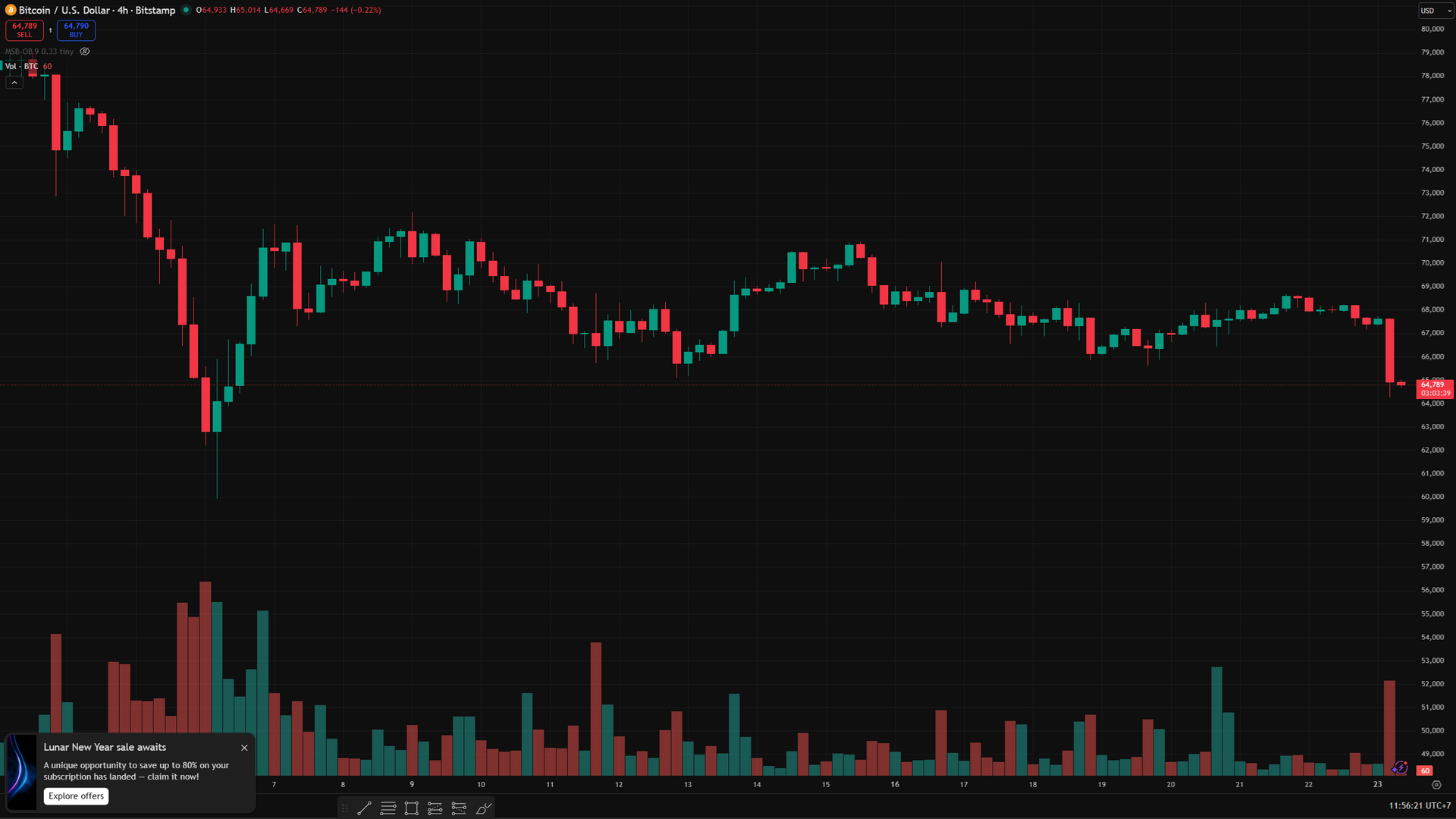 Trong bối cảnh hiện tại, phản ứng của giá quanh mốc 64.000 USD sẽ đóng vai trò quyết định. Nếu trụ vững, thị trường có thể hình thành nhịp hồi ngắn. Ngược lại, nếu bị phá vỡ, rủi ro lùi về 62.000 USD là khá rõ ràng.