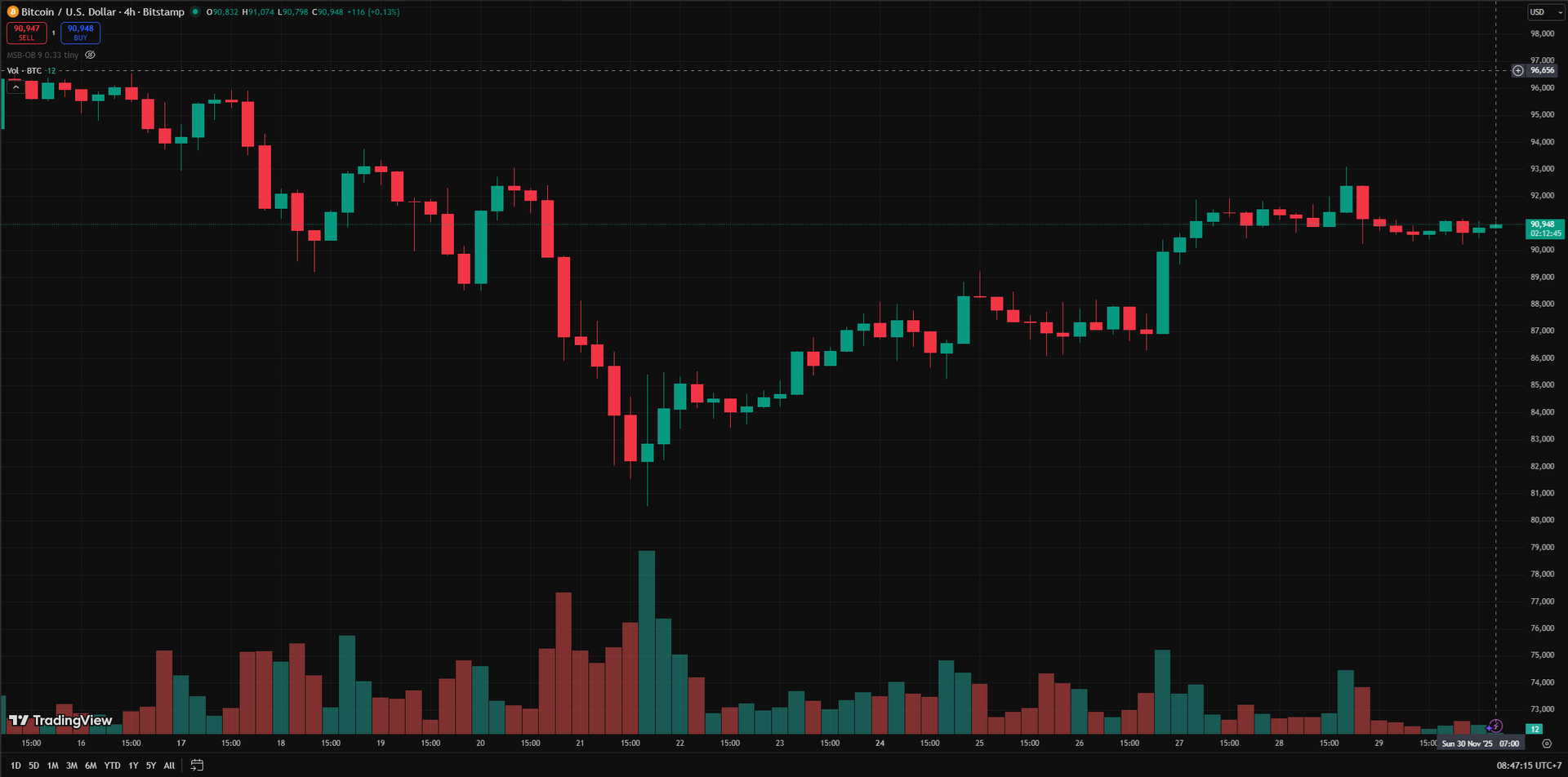 Biểu đồ BTC/USD theo khung 4 giờ tính đến 30.11- Ảnh: TradingView/Bitstamp