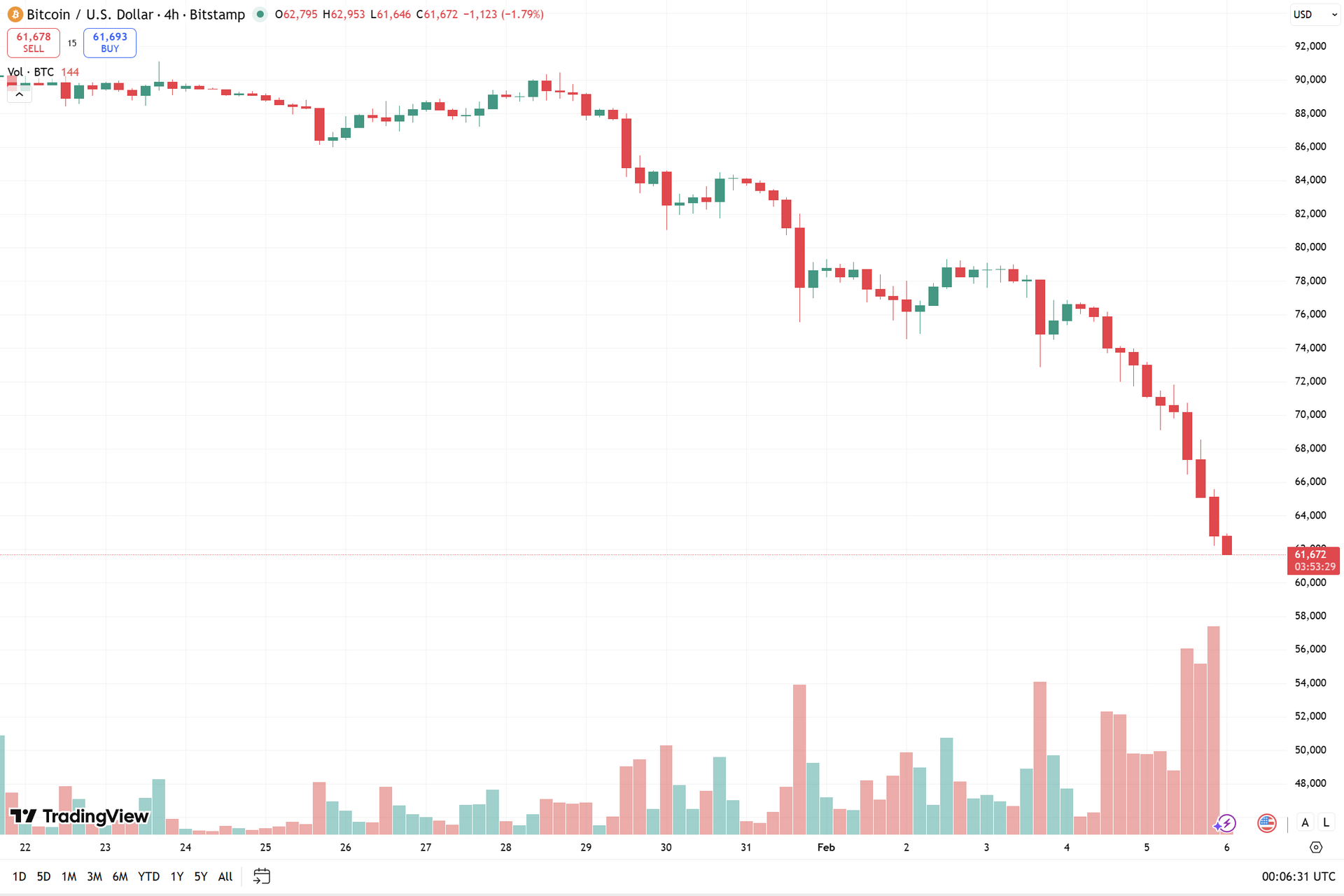 Biểu đồ BTC/USD theo khung 4 giờ tính đến 6.2 - Ảnh: TradingView/Bitstamp
