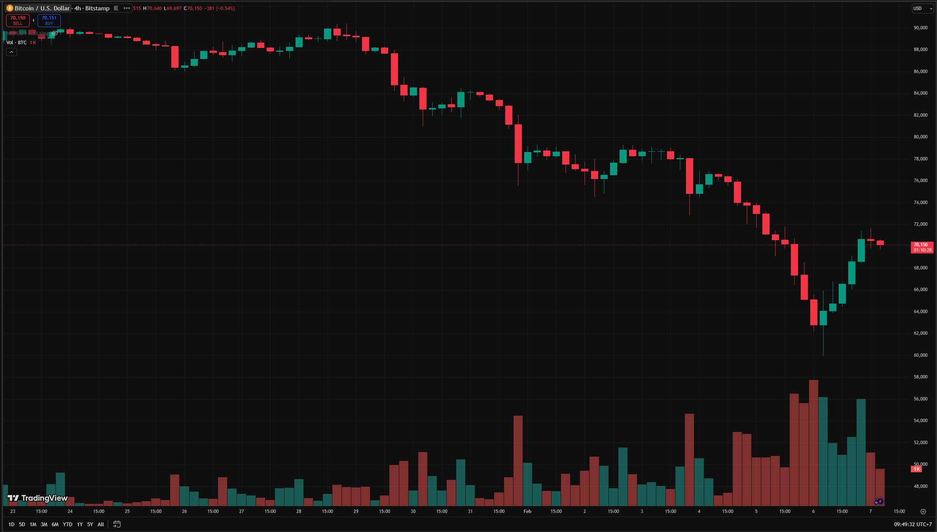 Chuyển sang khung 4 giờ (H4), Bitcoin vẫn vận động trong xu hướng giảm ngắn hạn, dù đã ghi nhận một nhịp hồi kỹ thuật sau cú bán tháo mạnh hồi đầu tháng 2. Sau khi rơi nhanh về vùng 60.000 - 64.000 USD, lực mua bắt đáy xuất hiện khá rõ, giúp giá bật lên và quay trở lại khu vực 70.000 USD. Tuy nhiên, nhịp hồi này chủ yếu mang tính thăm dò và chưa đủ sức đảo ngược xu hướng chung.