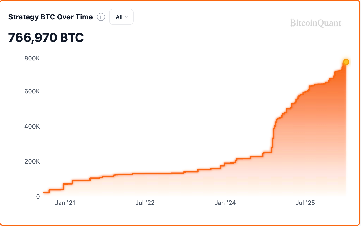 Biểu đồ lượng Bitcoin nắm giữ của Strategy - Ảnh: BitcoinQuant.CO