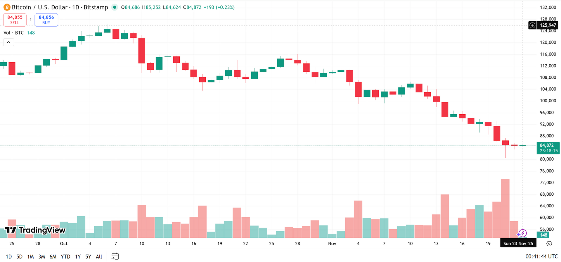 Biểu đồ giá theo ngày của BTC tính đến 23.11 - Ảnh: TradingView/Bitstamp