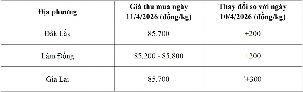 Tham khảo giá cà phê hôm nay ngày 11/4/2026 tại thị trường trong nước (Nguồn: Tạp chí Công Thương tổng hợp)