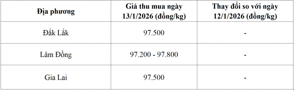 Tham khảo giá cà phê hôm nay ngày 13/1/2026 tại thị trường trong nước (Nguồn: Tạp chí Công Thương tổng hợp)