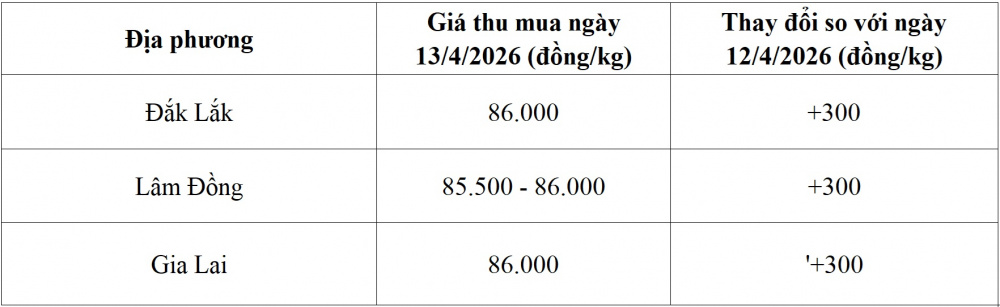 Tham khảo giá cà phê hôm nay ngày 13/4/2026 tại thị trường trong nước (Nguồn: Tạp chí Công Thương tổng hợp)