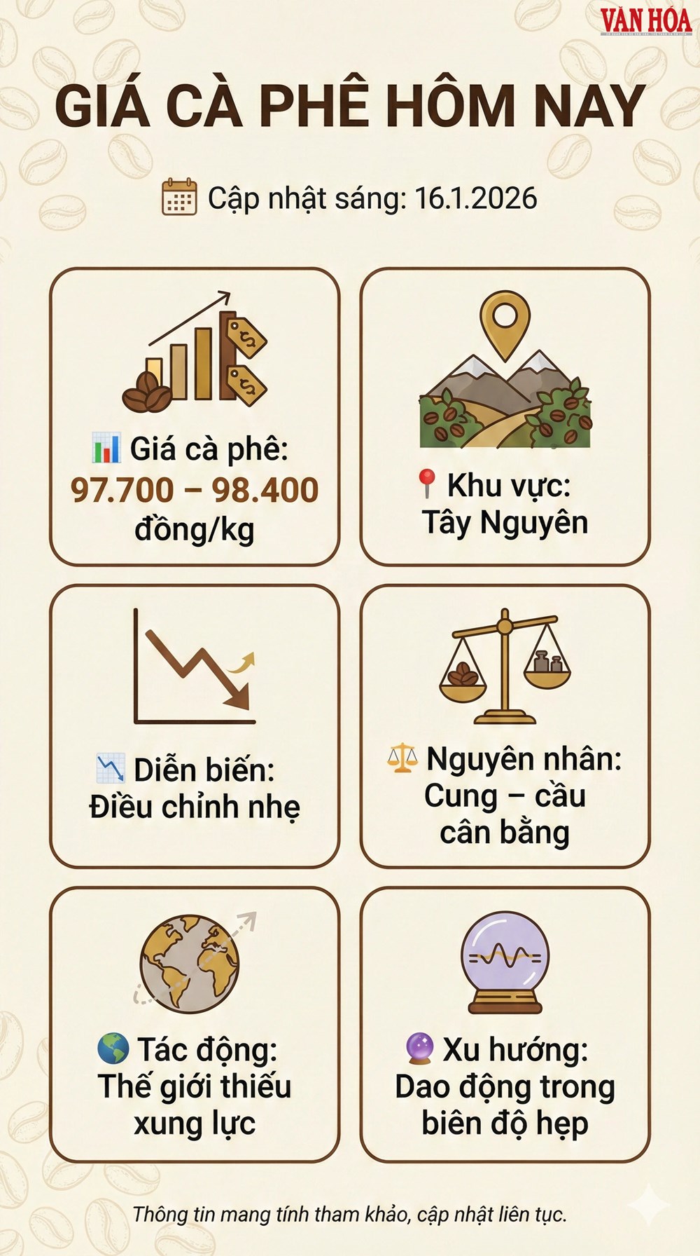 Nhìn chung, giá cà phê ngày 16.1.2026 phản ánh một thị trường ổn định, điều chỉnh nhẹ sau tăng và đang chờ thêm tín hiệu rõ ràng để xác lập xu hướng tiếp theo.