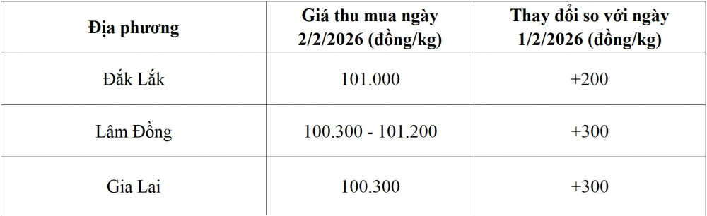 Giá cà phê hôm nay ngày 2/2 tại thị trường trong nước