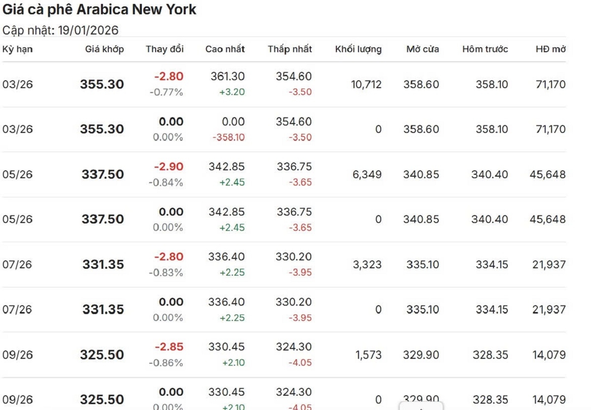 Trong khi đó, cùng thời điểm, giá cà phê Arabica trên sàn New York kỳ hạn giao tháng 12/2025 là 355,30 US cent/lb.