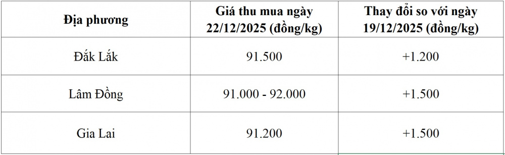 Tham khảo giá cà phê hôm nay ngày 22/12/2025 tại thị trường trong nước (Nguồn: Tạp chí Công Thương tổng hợp)