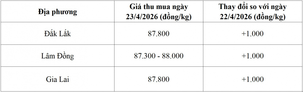 Tham khảo giá cà phê hôm nay ngày 23/4/2026 tại thị trường trong nước (Nguồn: Tạp chí Công Thương tổng hợp)