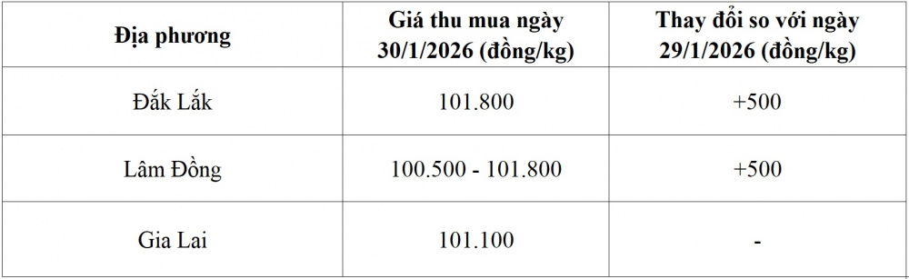 Giá cà phê hôm nay ngày 30/1 tại thị trường trong nước