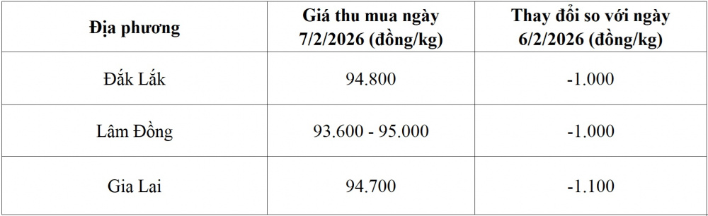 Tham khảo giá cà phê hôm nay ngày 7/2/2026 tại thị trường trong nước (Nguồn: Tạp chí Công Thương tổng hợp)