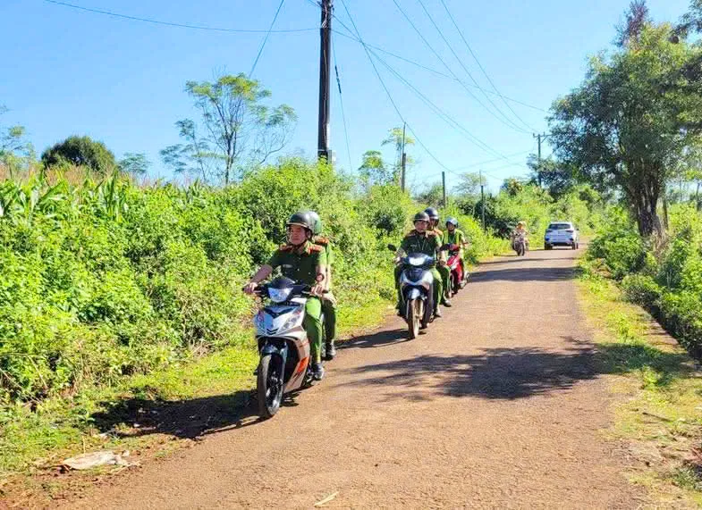 Công an xã Biển Hồ tuần tra, ngăn ngừa trộm cắp cà phê.