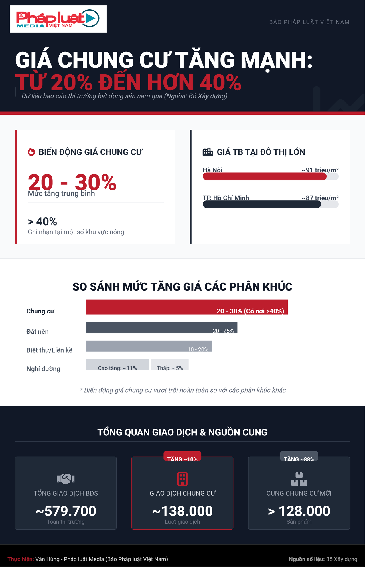 Theo thống kê của Bộ Xây dựng, mức tăng của chung cư cũng vượt trội so với các loại hình như biệt thự, nhà liền kề trong dự án với đà biến động 10-20%, đất nền 20-25%. Giá bán sơ cấp bất động sản nghỉ dưỡng cao tầng tăng 11% so với 2024, thấp tầng khoảng 5%.