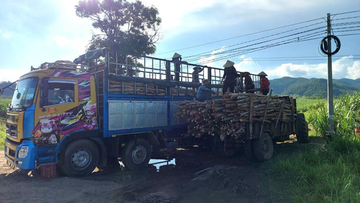 Người dân đang vào cao điểm khai thác gỗ keo.