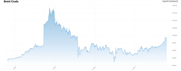 Tuy nhiên, đến phiên giao dịch sáng nay (12/3, giờ Hà Nội), giá dầu quốc tế trở lại đà tăng và một lần nữa áp sát mốc 100 USD/thùng và được dự báo sẽ tiếp tục biến động.