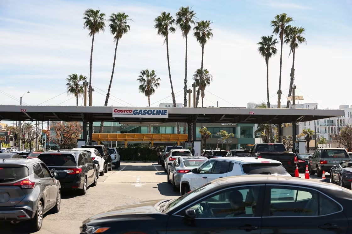 Ô tô xếp hàng chờ mua xăng tại Mỹ. Ảnh: NBC News.