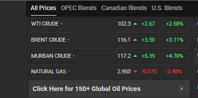 Giá dầu thế giới trên trang Oil Price. Ảnh: OIL PRICE