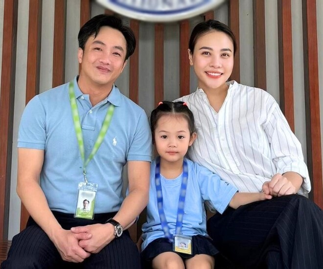 Vợ chồng Cường Đô La - Đàm Thu Trang đồng hành cùng con gái trong ngày đầu đi học.