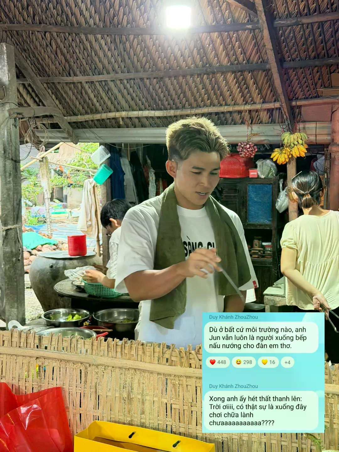 Jun Phạm khiến fan bật cười khi anh vẫn không "thoát" được vai trò bếp trưởng. Ảnh: Broadcast Duy Khánh.