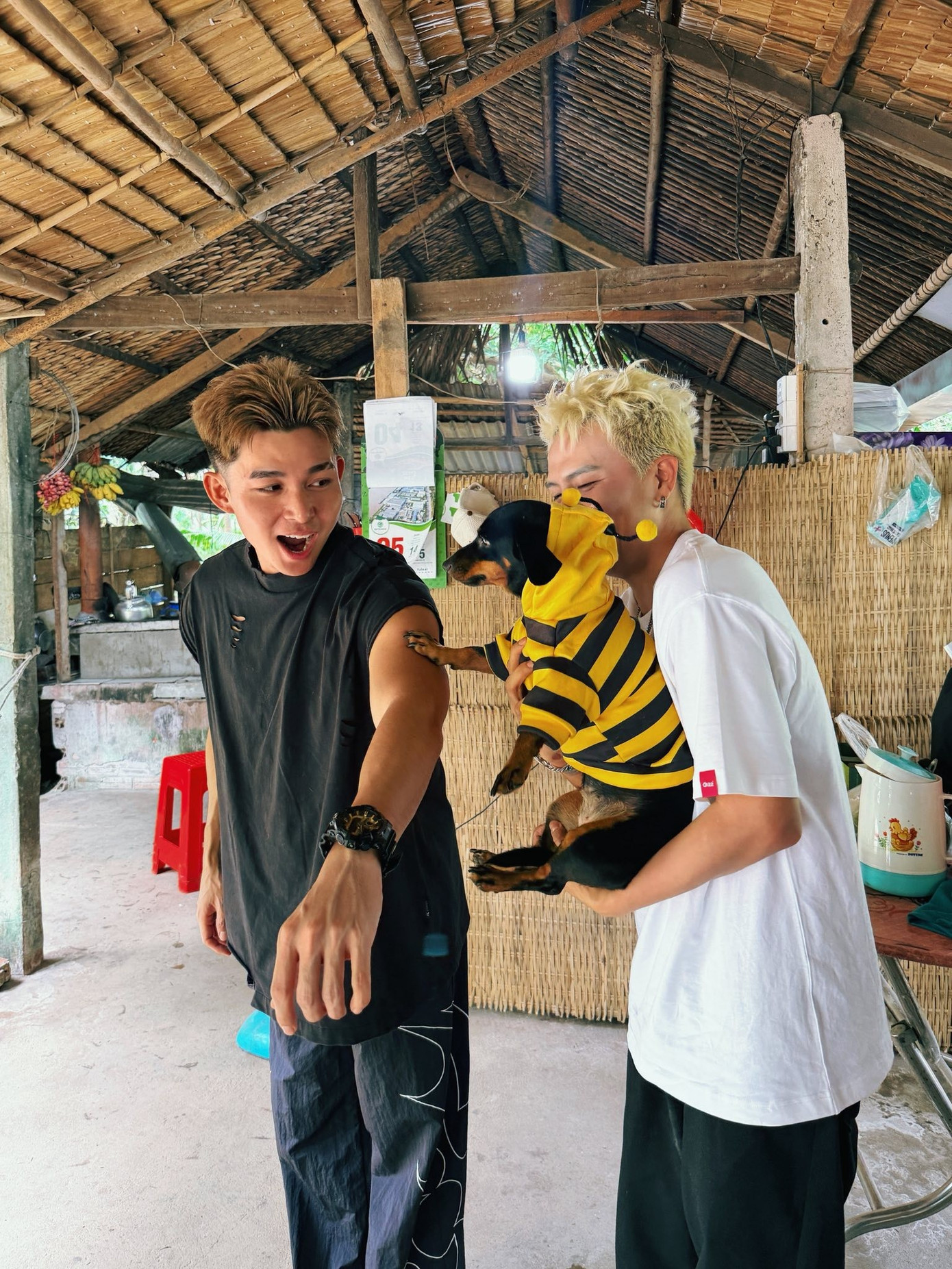 "Anh ba" Bùi Công Nam vướng lịch trình nên không thể đi cùng mọi người, không quên gửi gắm: "Nhớ nói Chín gửi dừa lên cho em". Ảnh: Phạm Duy Thuận.