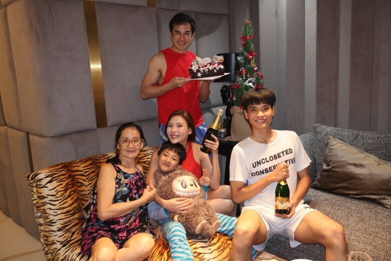 Mới đây, vợ chồng Lương Thế Thành và Thúy Diễm đã đăng tải loạt hình ảnh gia đình quây quần bên nhau trong không gian ấm cúng những ngày cuối năm. Cả gia đình nam diễn viên cùng diện trang phục đơn giản, tận hưởng những giây phút sum họp bên người thân và mẹ chồng.