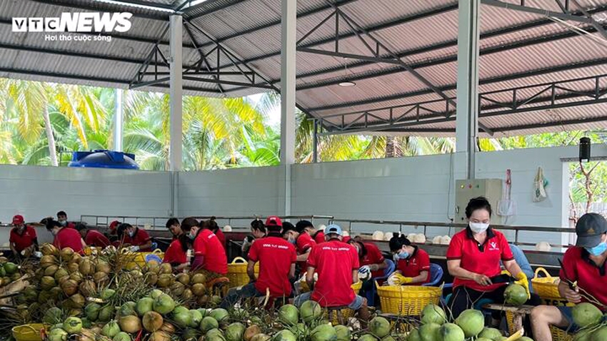Dừa tươi sau khi thu hoạch tại vườn sẽ vận chuyển ngay về nhà máy để sơ chế, đóng gói
