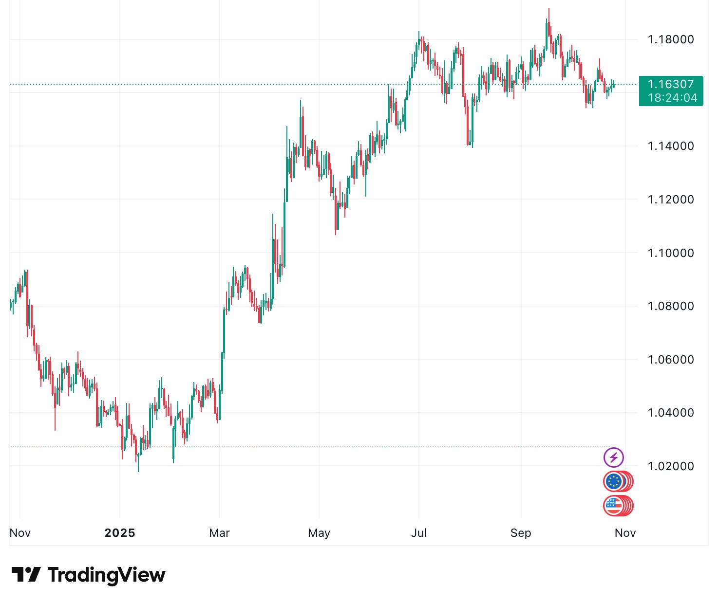 Diễn biến tỷ giá EUR/USD từ đầu năm đến ngày 27/10/2025. (Nguồn: TradingView)
