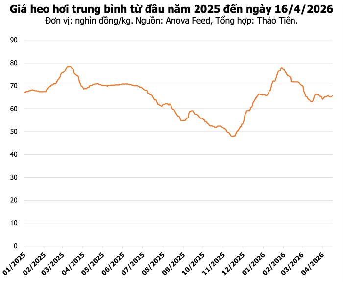 Thị trường heo hơi trong nước sáng ngày 16/4/2026 ghi nhận những biến động trái chiều giữa các khu vực. Trong khi giá heo tại miền Bắc và miền Trung - Tây Nguyên duy trì trạng thái đi ngang, khu vực miền Nam tiếp tục ghi nhận đà tăng nhẹ tại một số địa phương trọng điểm, đưa mức giá cao nhất toàn quốc lên ngưỡng 69.000 đồng/kg.