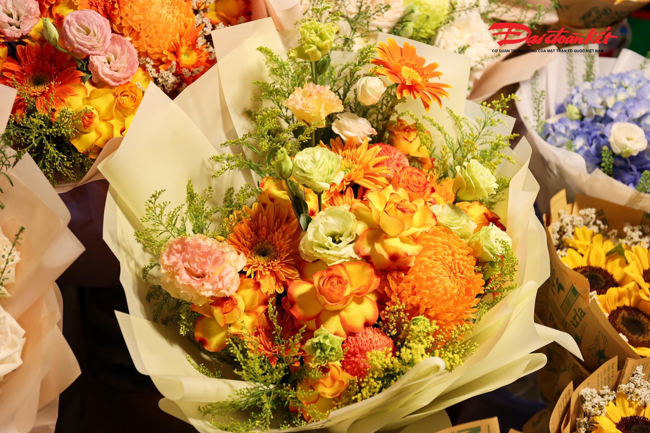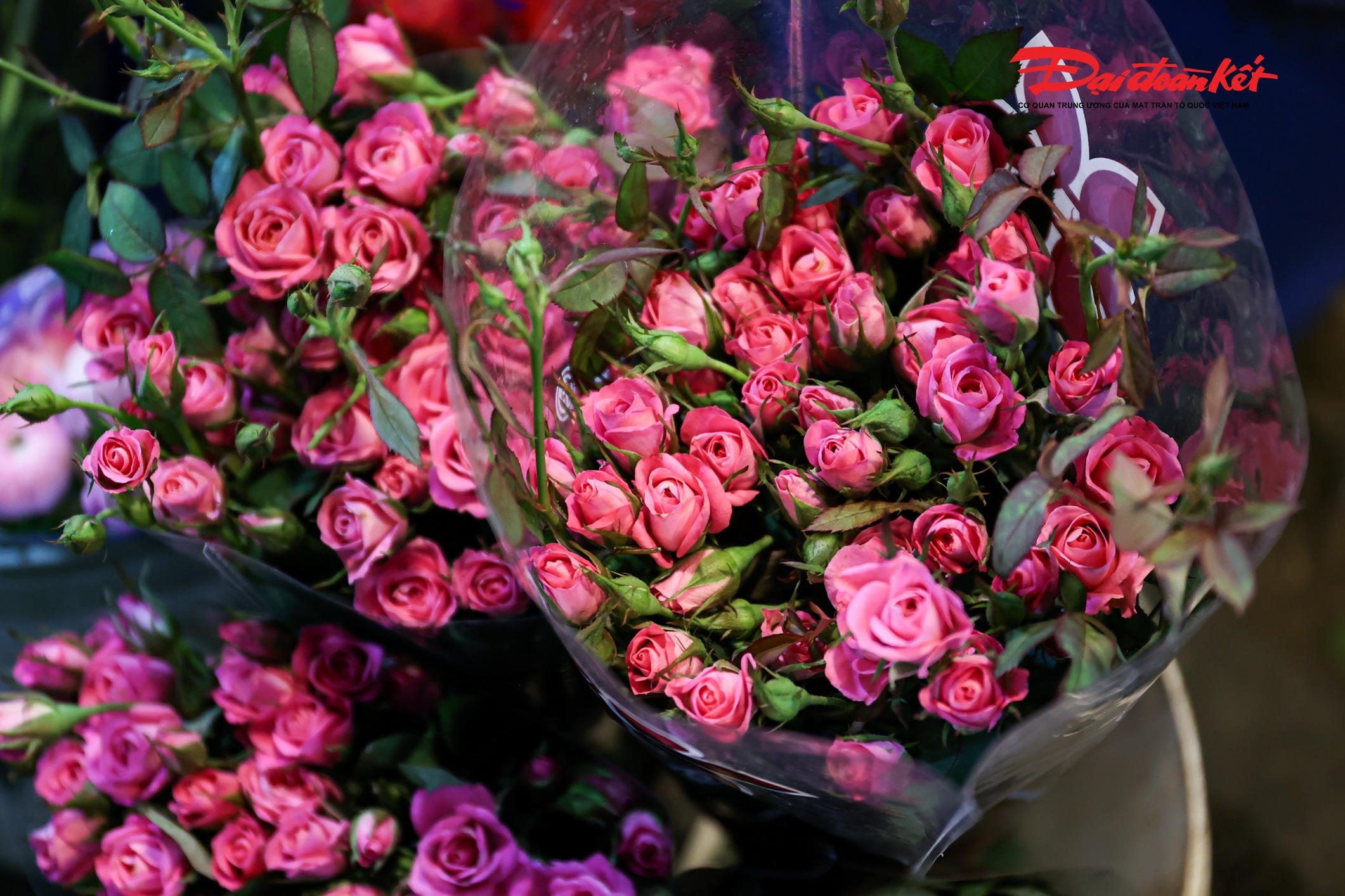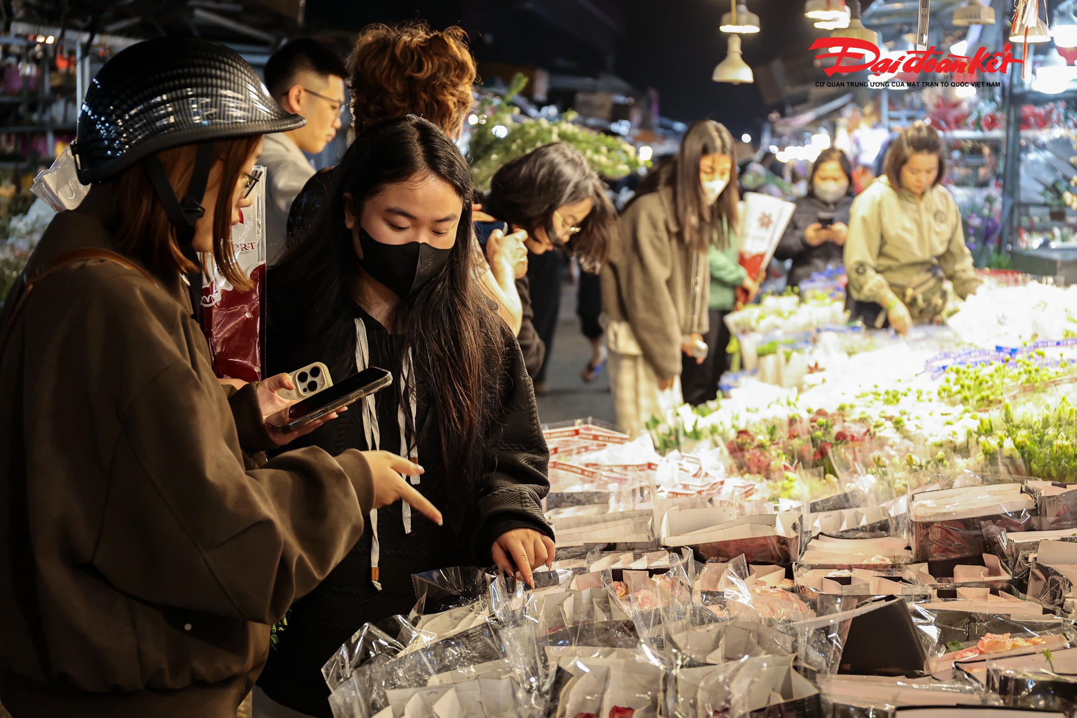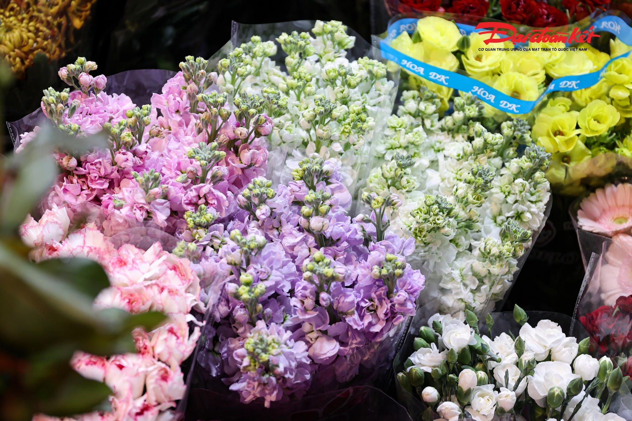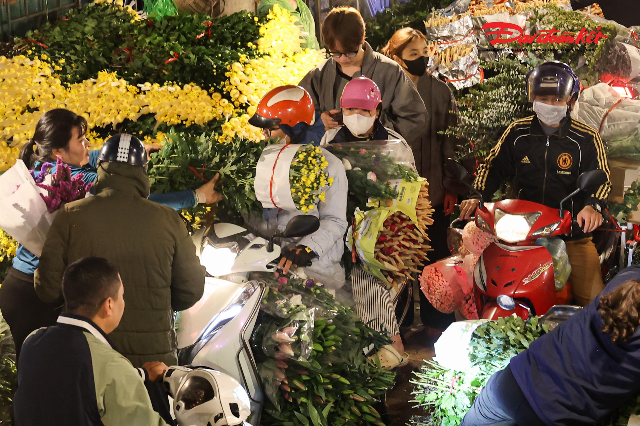 Theo ghi nhận của PV Báo Đại đoàn kết rạng sáng ngày 7/3, chợ hoa Quảng An (phường Hồng Hà, Hà Nội) trở nên rực rỡ với đủ loại hoa tươi được nhập về từ nhiều địa phương như Đà Lạt, Sơn La, Mộc Châu… Các loại hoa quen thuộc như hoa hồng, tulip, baby, ly, hướng dương được bày bán khắp các sạp, tạo nên khung cảnh đầy màu sắc giữa đêm.