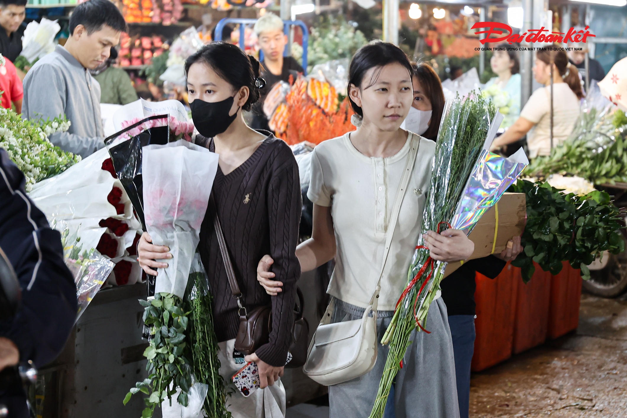 Sau khi lựa chọn, nhiều khách hàng rời chợ với những bó hoa lớn để chuẩn bị cho dịp 8/3.