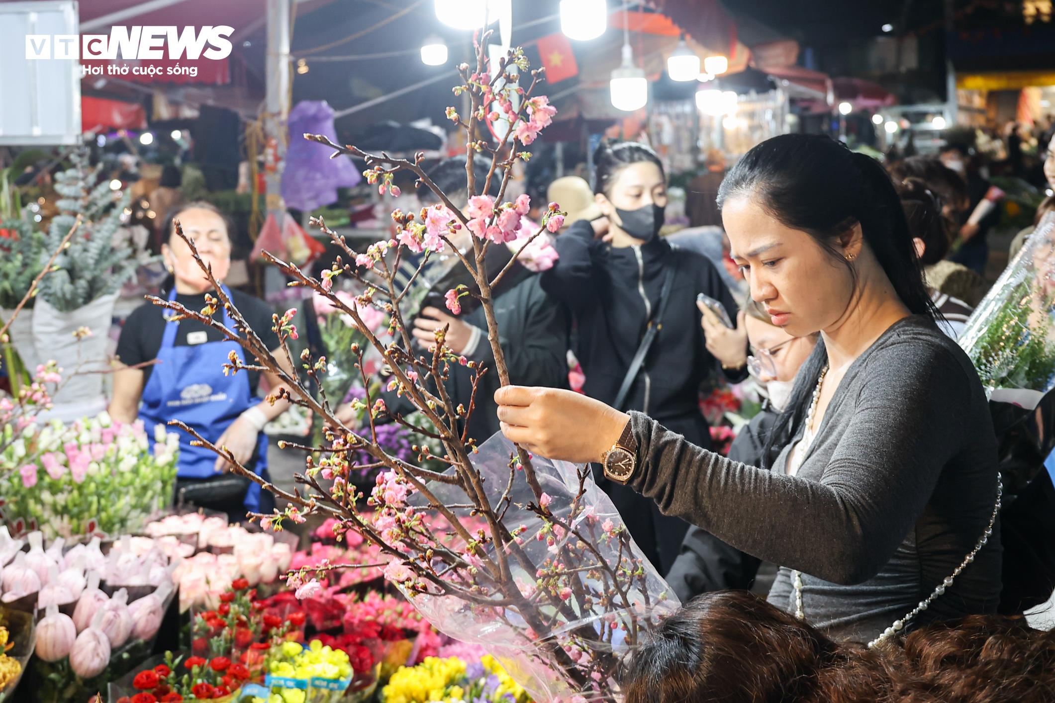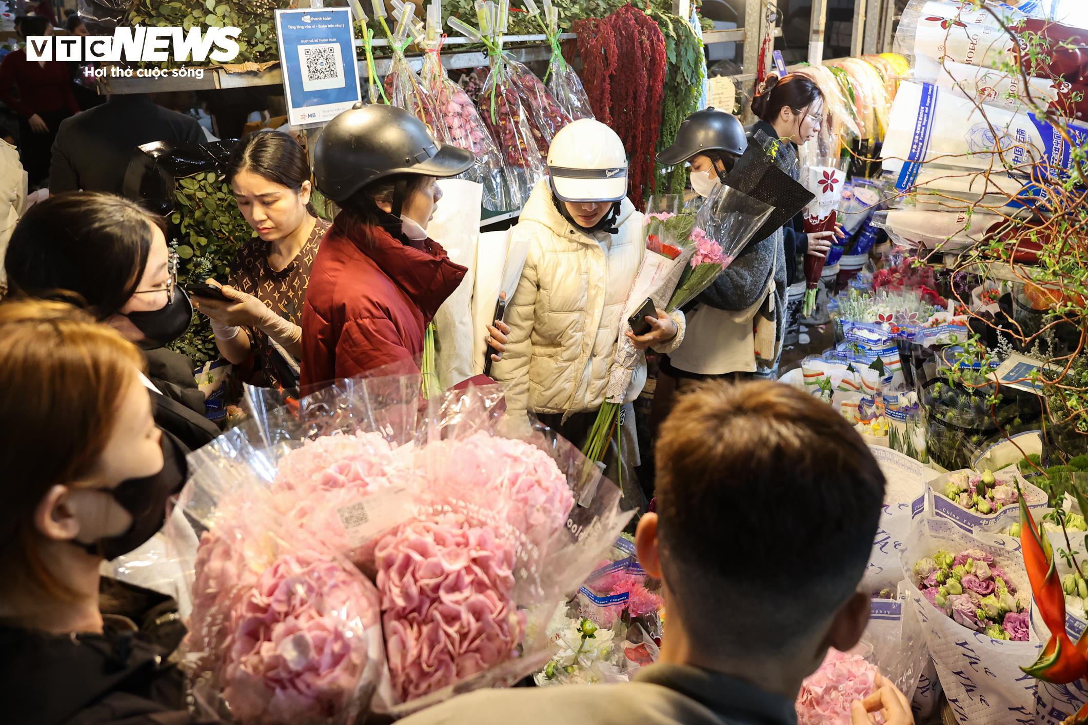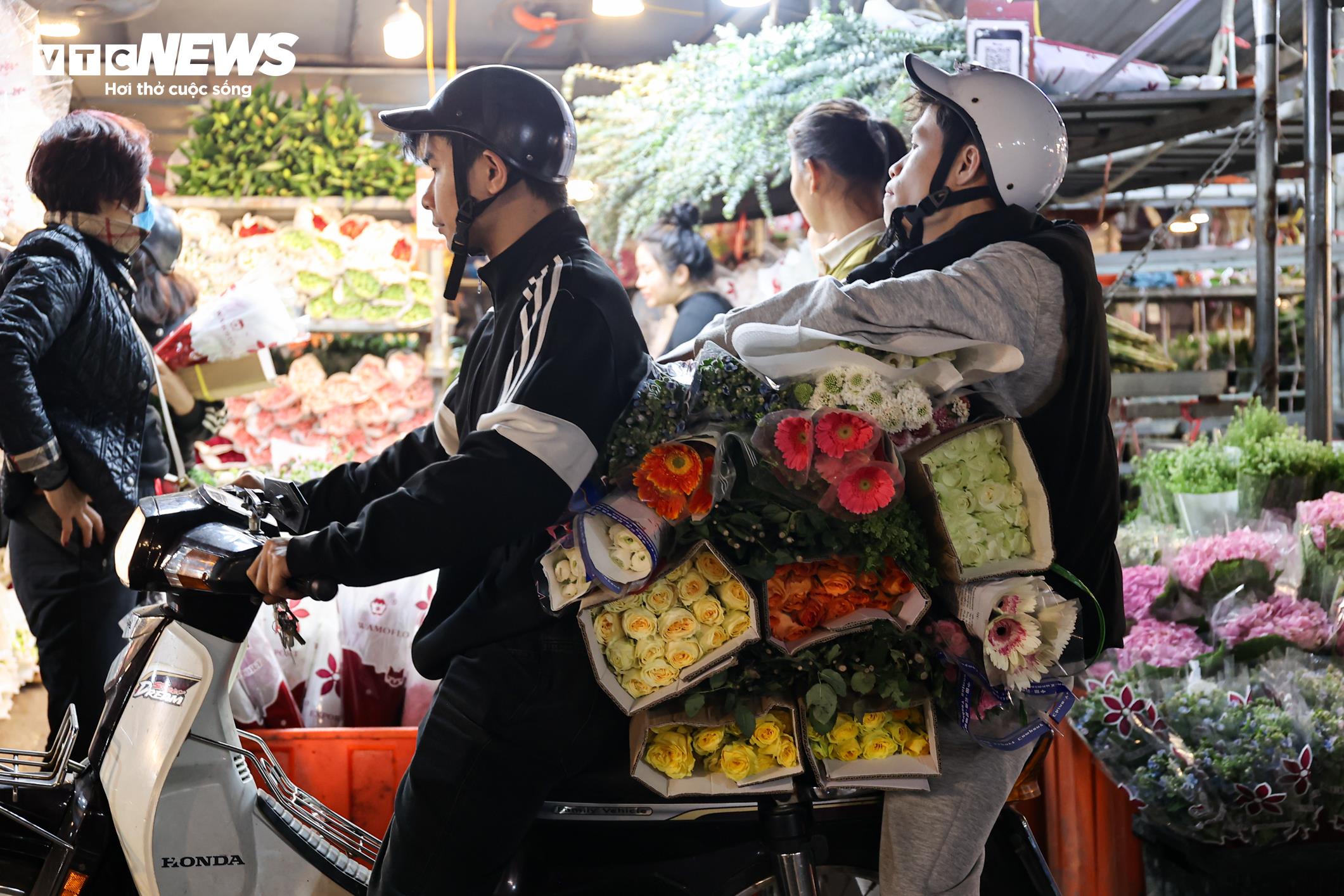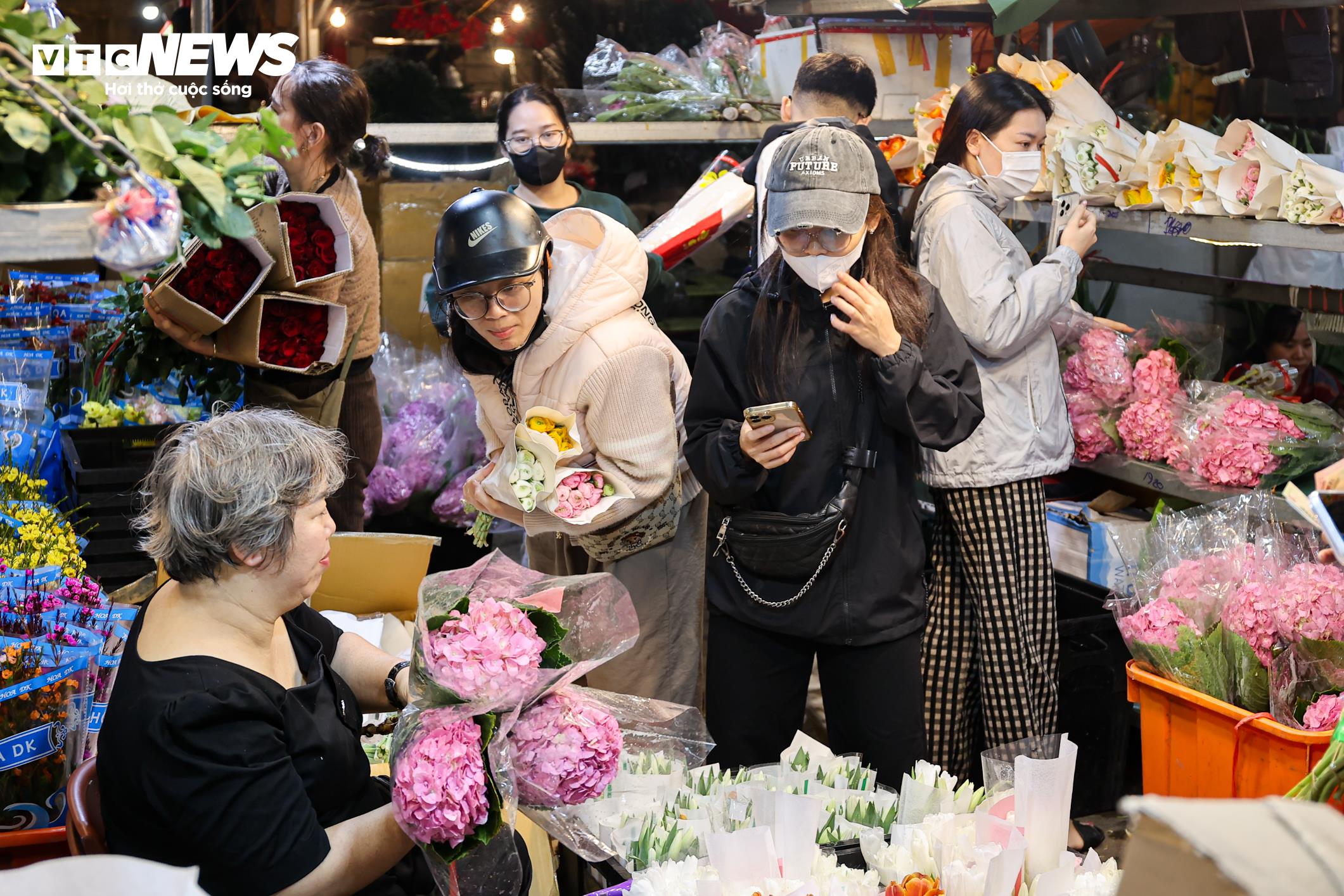 Càng về khuya, không khí mua bán tại chợ hoa càng trở nên sôi động. Các tiểu thương dự báo lượng khách sẽ tiếp tục tăng mạnh trong ngày mai 8/3.