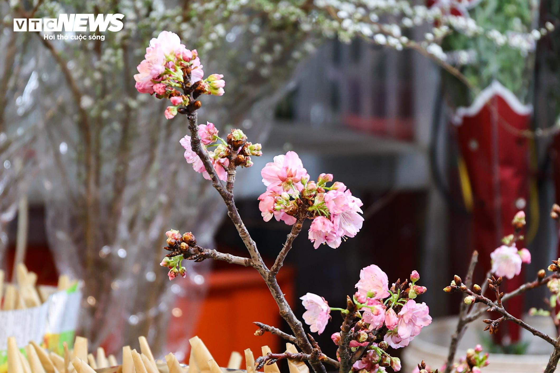 Dù đã hết Tết nhưng những cành đào tuyết với sắc hồng dịu nhẹ cũng thu hút nhiều khách hàng, với mức giá khoảng 200.000 - 250.000 đồng/bó.