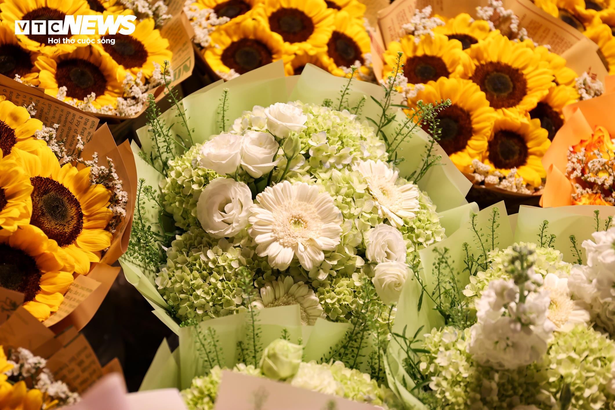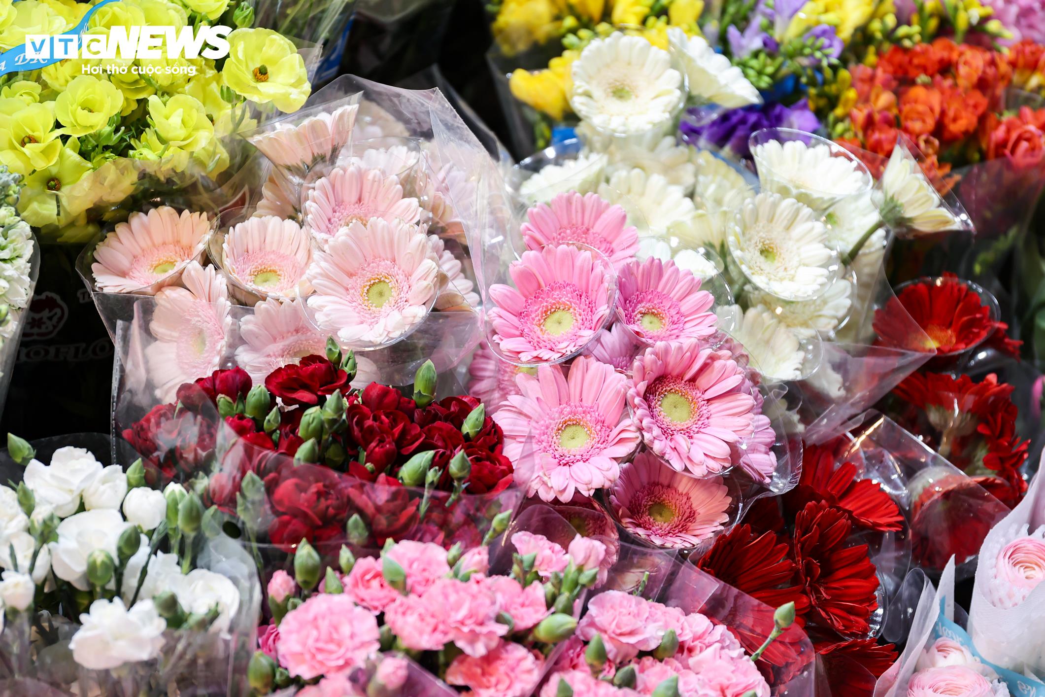 Các bó và lẵng hoa thiết kế sẵn được bày bán với mức giá từ 300.000 đến 800.000 đồng mỗi sản phẩm. Ở phân khúc cao cấp, những bó hoa nhập khẩu, được đóng hộp cùng phụ kiện trang trí bắt mắt có giá từ 1 đến 2 triệu đồng.