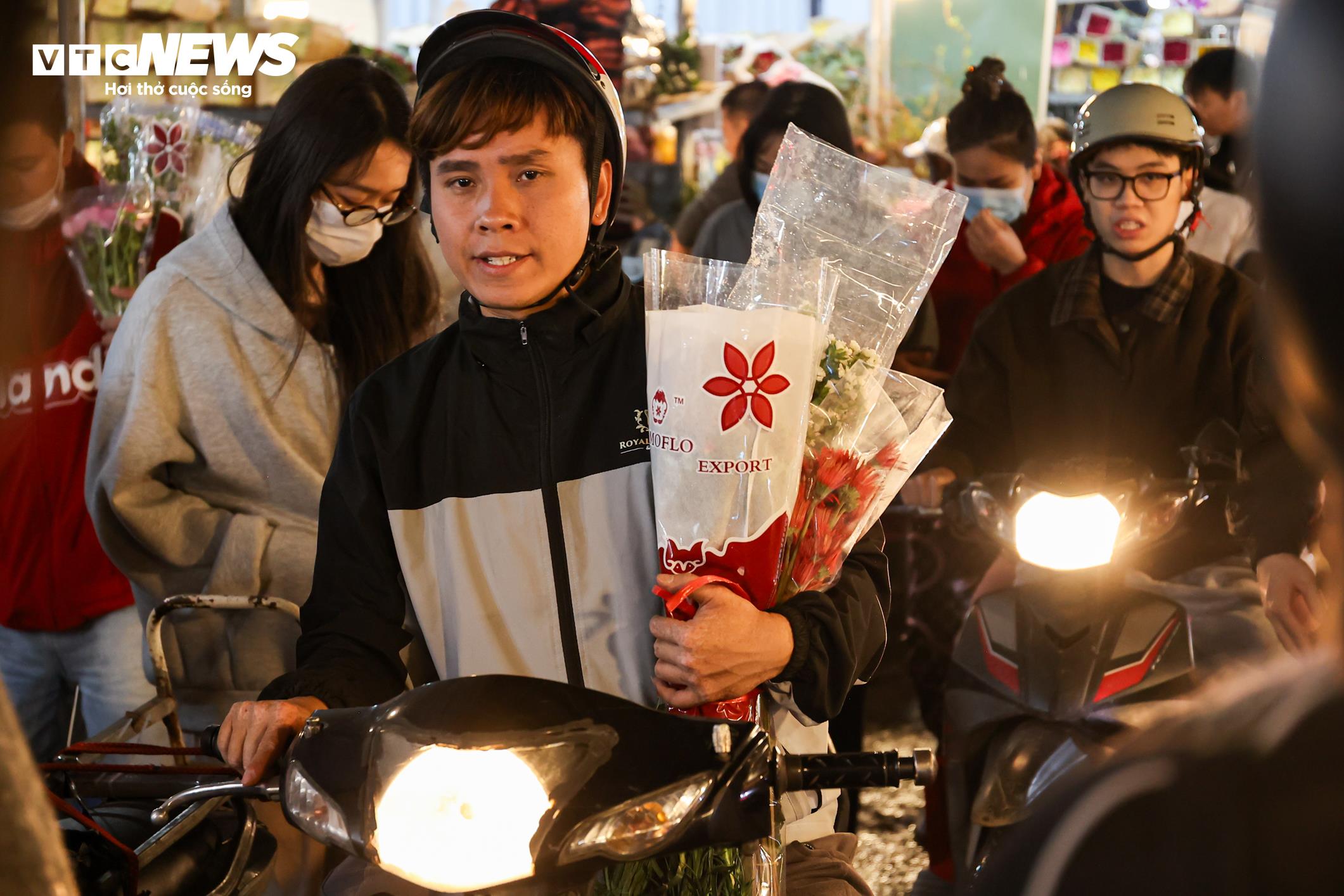 Nhiều khách hàng rời chợ với những bó hoa lớn.