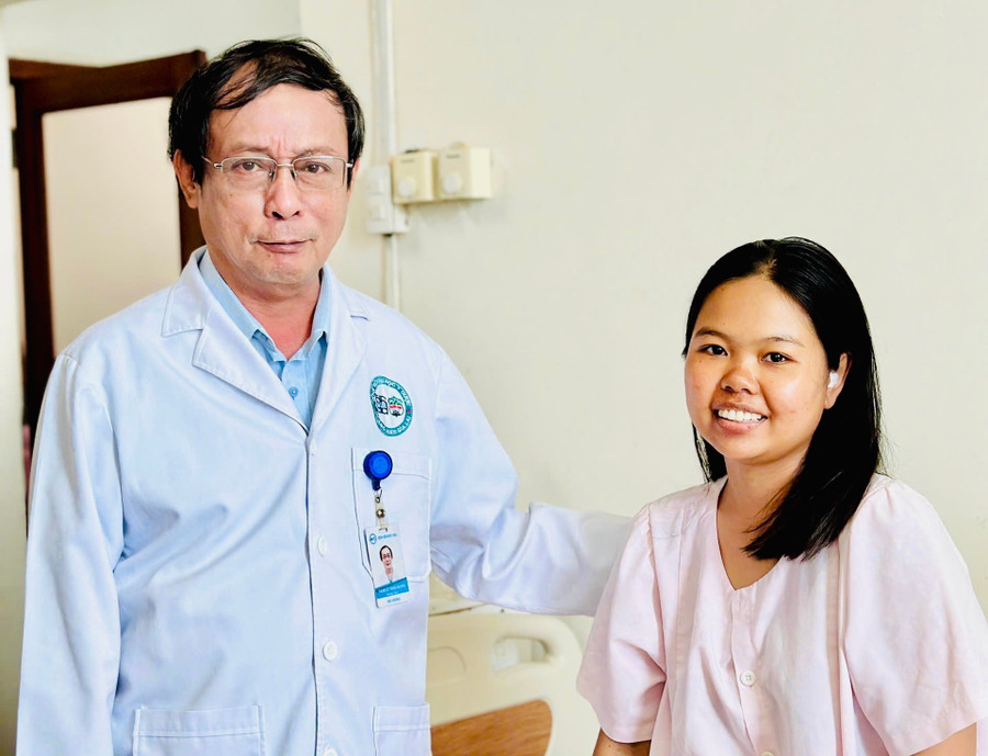 Bác sĩ thăm hỏi bệnh nhân Đao sau phẫu thuật. Ảnh: ĐVCC