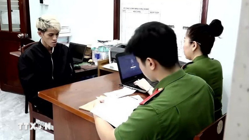 Đối tượng Nguyễn Hữu Đức tại cơ quan công an. (Ảnh: TTXVN phát)