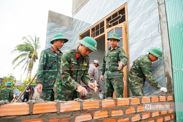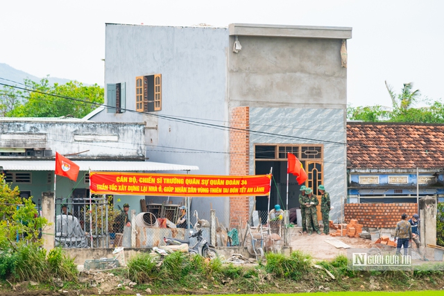 Đại úy Hưng nói: "Khi lực lượng chúng tôi nhận nhiệm vụ, nhà bà Định sụp đổ hoàn toàn. Trước ngày 10/12, chúng tôi đã đến khảo sát, bố trí lực lượng hỗ trợ vật liệu. Triển khai thi công từ ngày 10/12, đến nay, tròn 1 tháng, căn nhà bà Định đã hoàn thành phần chính".