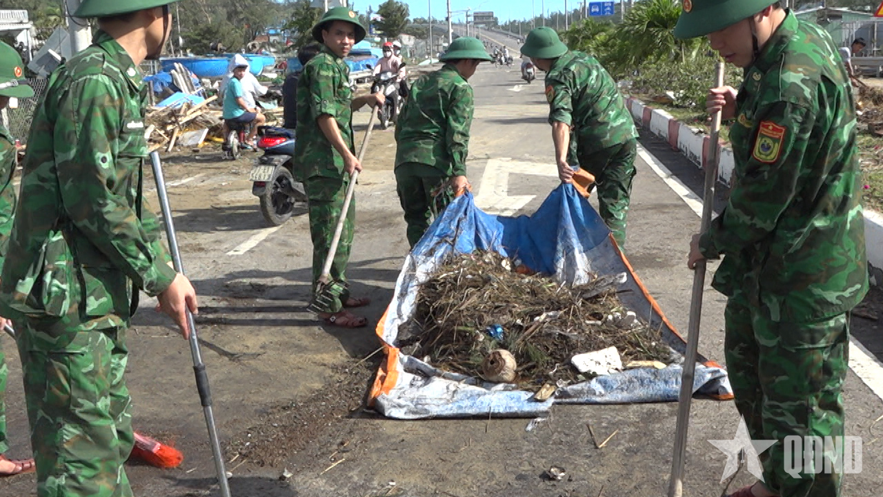 Trung tá Nguyễn Ngọc Dương cho hay: “Trước khi bão số 13 đổ bộ, cán bộ, chiến sĩ đồn đã phối hợp với chính quyền địa phương sơ tán toàn bộ người dân ở vùng xung yếu đến các trụ sở thôn, trường học hoặc nhà dân an toàn. Sau bão, lực lượng biên phòng tiếp tục bám địa bàn, hỗ trợ bà con thu dọn, thống kê thiệt hại, hướng dẫn sắp xếp lại vật dụng, ổn định tạm thời chỗ ở”.