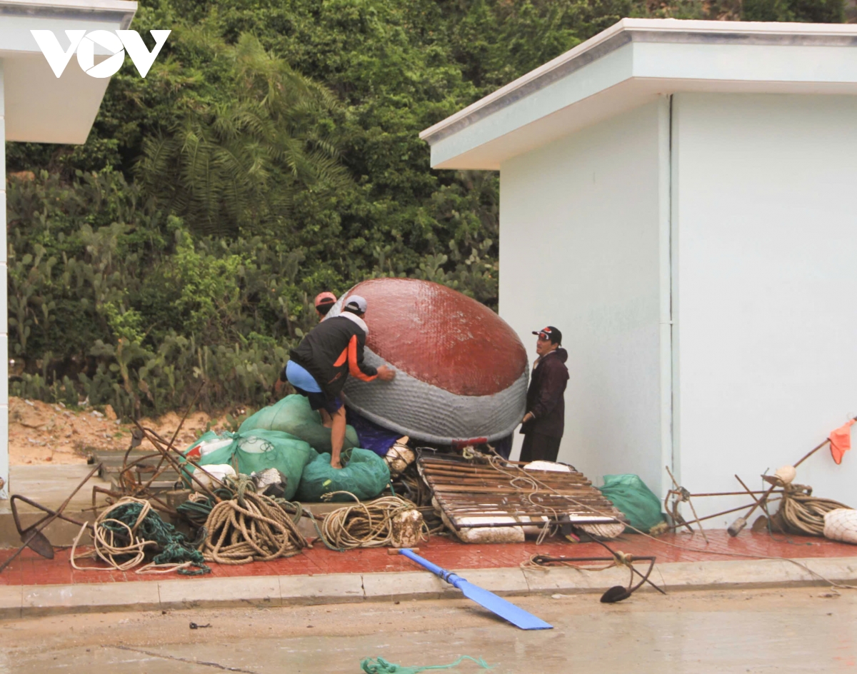 Ngư dân miền biển ở Gia Lai cất giữ ngư cụ trước ảnh hưởng của bão Kalmaegi
