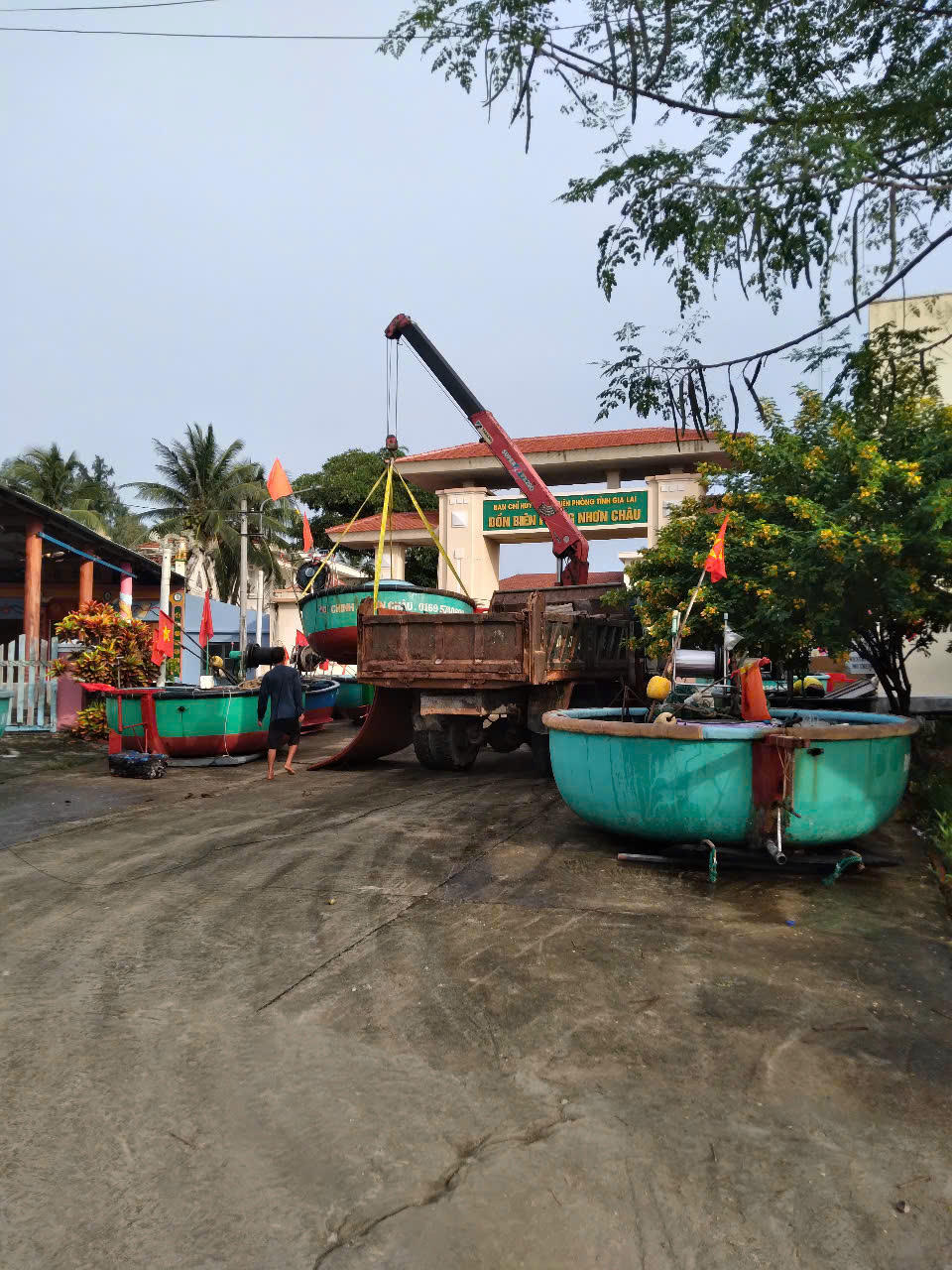 Lực lượng chức năng hỗ trợ người dân đưa phương tiện đánh cá vào nơi trú ẩn an toàn