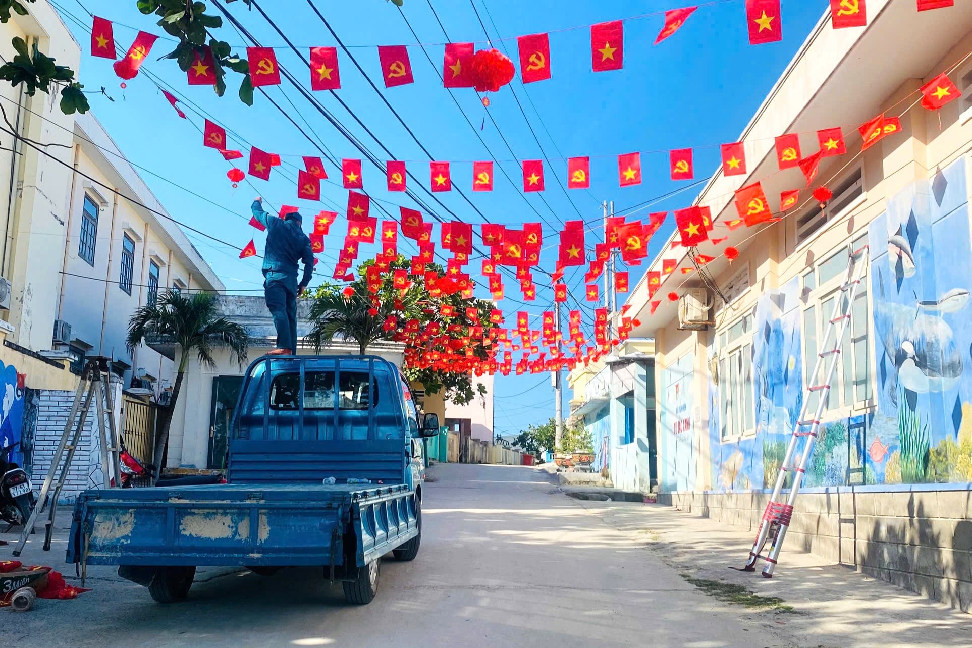 Đường làng, ngõ xóm được trang hoàng chào đón ngày hội toàn dân