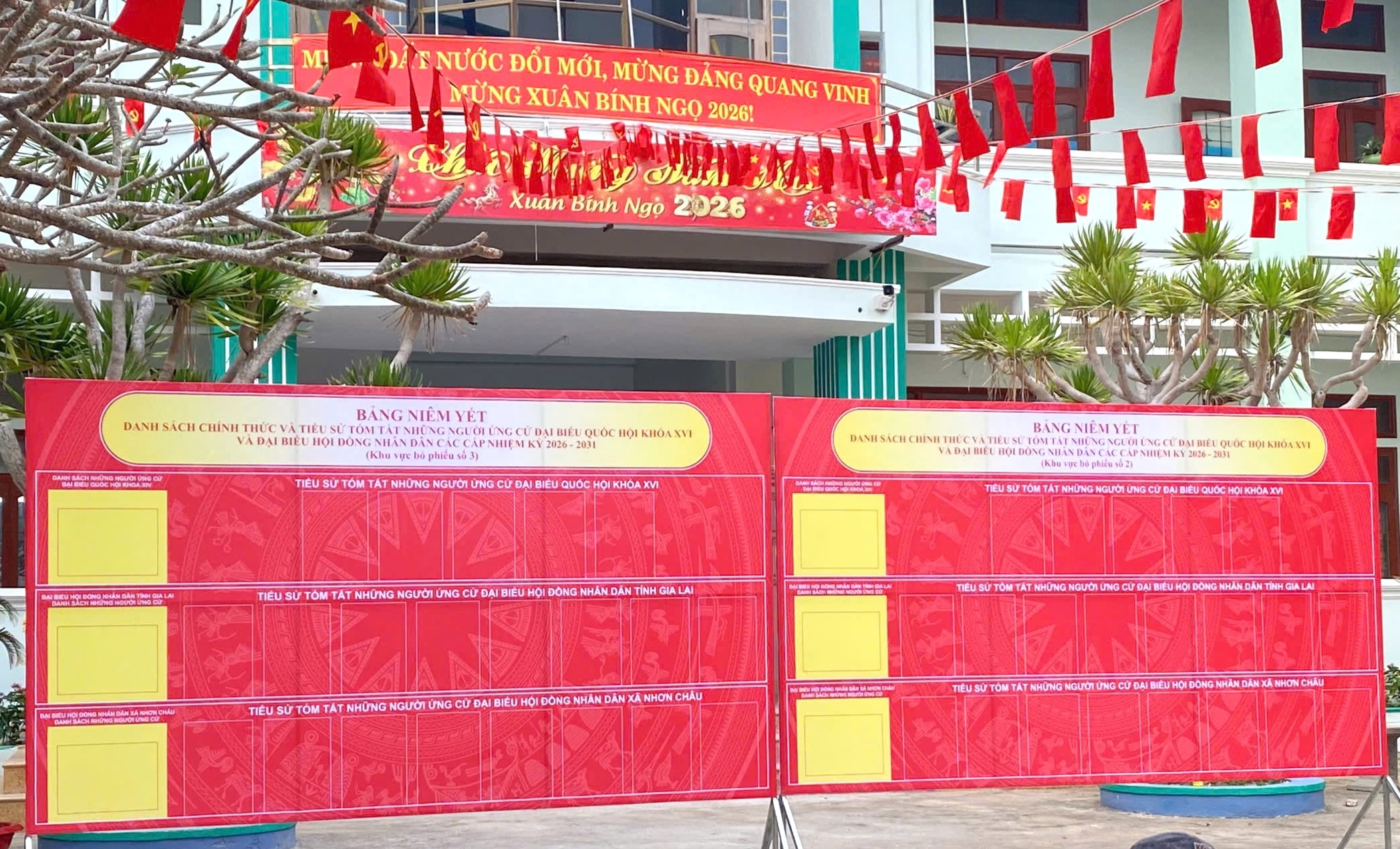 Các điểm bầu cử được trang hoàng, niêm yết danh sách đại biểu ứng cử