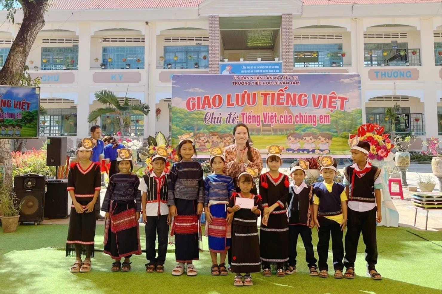 Tiếp đó, Trường Tiểu học Lê Văn Tám (xã Cửu An) phối hợp với Hội Liên hiệp Phụ nữ xã tổ chức chương trình giao lưu “Tiếng Việt của chúng em” năm học 2025 - 2026, thu hút hơn 450 học sinh tham gia, trong đó có 112 học sinh dân tộc thiểu số từ lớp 1 đến lớp 5.