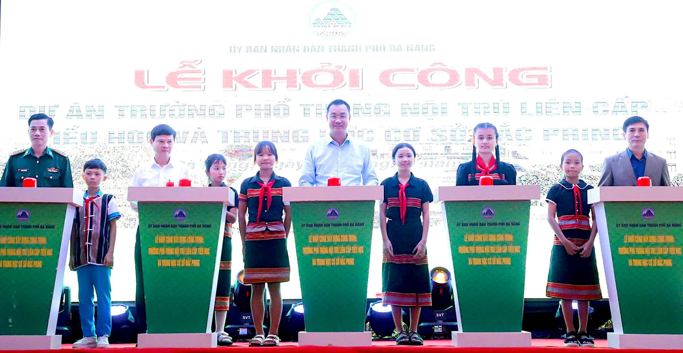 Ngày 16/11, UBND TP Đà Nẵng tổ chức lễ khởi công đồng loạt 5 trường phổ thông nội trú (PTNT) liên cấp Tiểu học và Trung học cơ sở (TT-THCS) tại các xã biên giới Hùng Sơn, Đắc Pring, A Vương, La Dêê và La Êê.